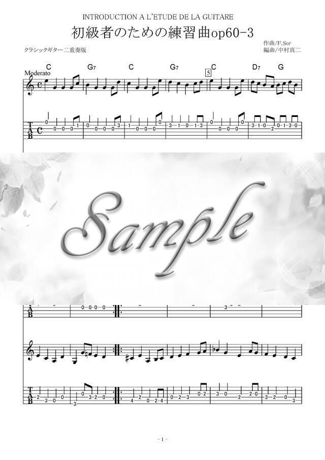 - ソルのクラシックギター練習曲第60番の二重奏シリーズの3曲目です。1曲目、2曲目とあわせてギター教室の初級レッスンや発表会用の選曲におススメです。