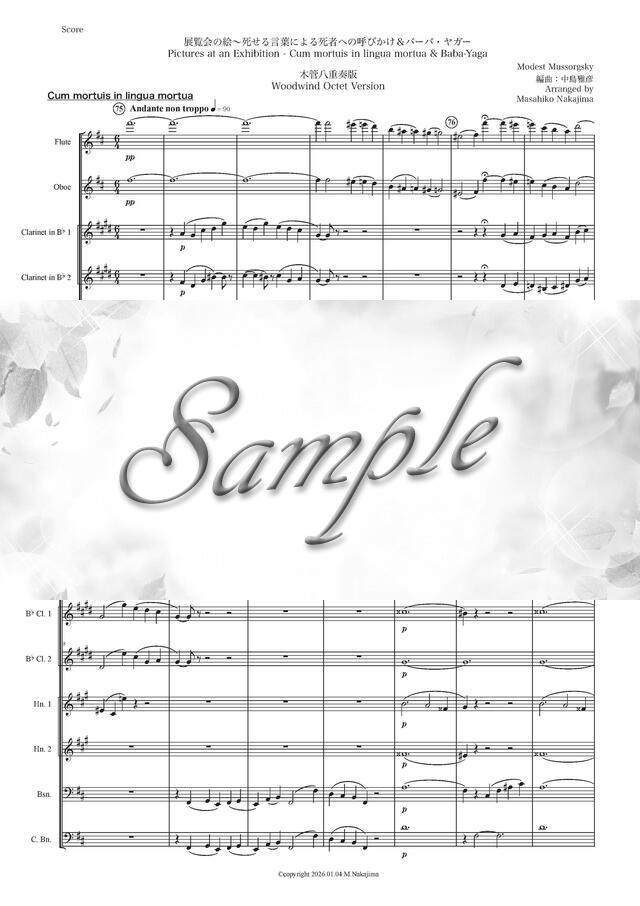 ムソルグスキー「展覧会の絵~死せる言葉による死者への呼びかけ&バーバ・ヤガー」木管八重奏版 コンビニプリント対応