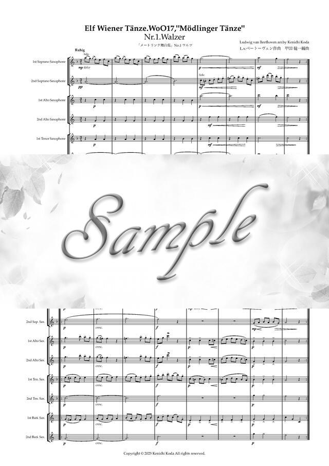 - ベートーヴェン作曲の舞曲集です。ワルツ、メヌエットなど楽しく肩の凝らない曲ばかりです。サクソフォンの明るい響きによく合うのではないでしょうか?