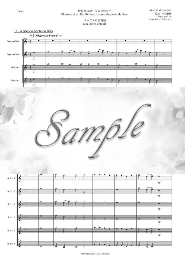 ムソルグスキー「展覧会の絵~キエフの大門」サックス八重奏版 コンビニプリント対応