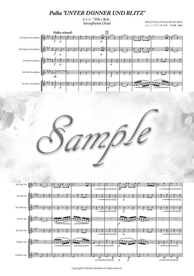 サクソフォン八重奏 ポルカ「雷鳴と稲妻」 コンビニプリント対応