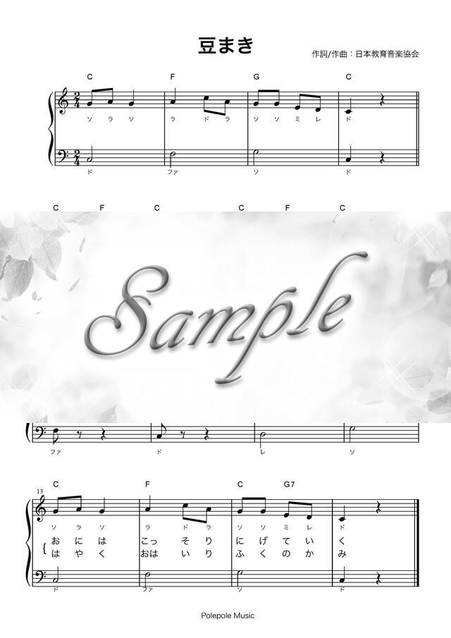 「豆まき」簡単伴奏・音名ふりがな付き楽譜 コンビニプリント対応