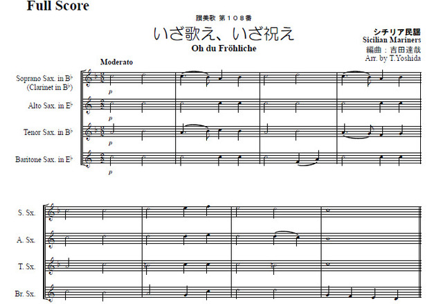 讃美歌108番「いざ歌え、いざ祝え」 木管アンサンブル楽譜