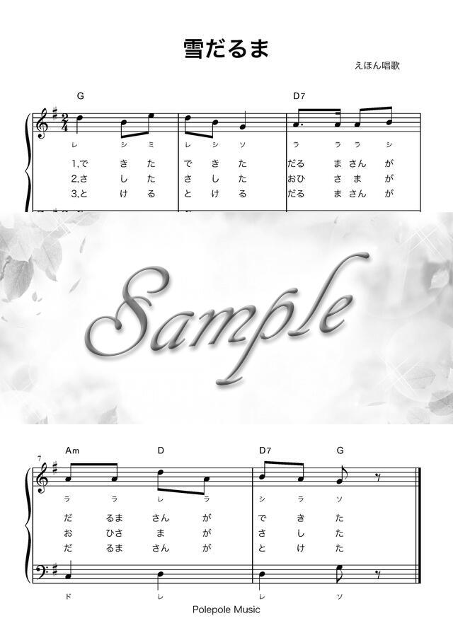 「雪だるま」簡単伴奏・音名ふりがな付き弾き歌い楽譜 コンビニプリント対応