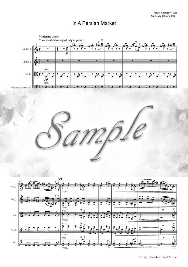 ケテルビー作曲「ペルシャの市場にて」弦楽四重奏(スコア) コンビニプリント対応