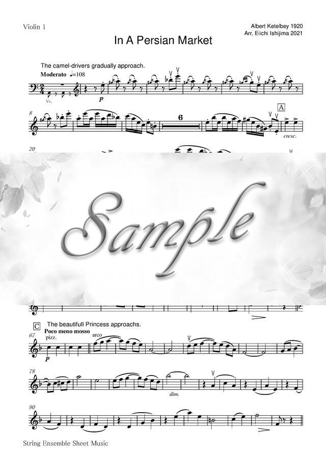 ケテルビー作曲「ペルシャの市場にて」弦楽四重奏(パート譜) コンビニプリント対応