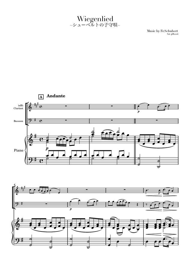 「シューベルトの子守唄」クラリネット&ファゴット / ピアノトリオ コンビニプリント対応