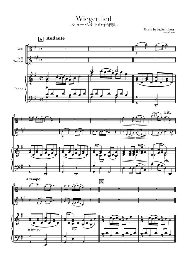 「シューベルトの子守唄」ヴィオラ&トランペット / ピアノトリオ コンビニプリント対応