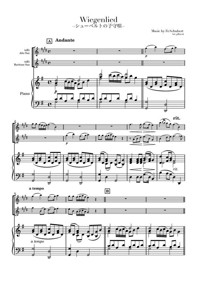 「シューベルトの子守唄」アルトサックス&バリトンサックス / ピアノトリオ コンビニプリント対応