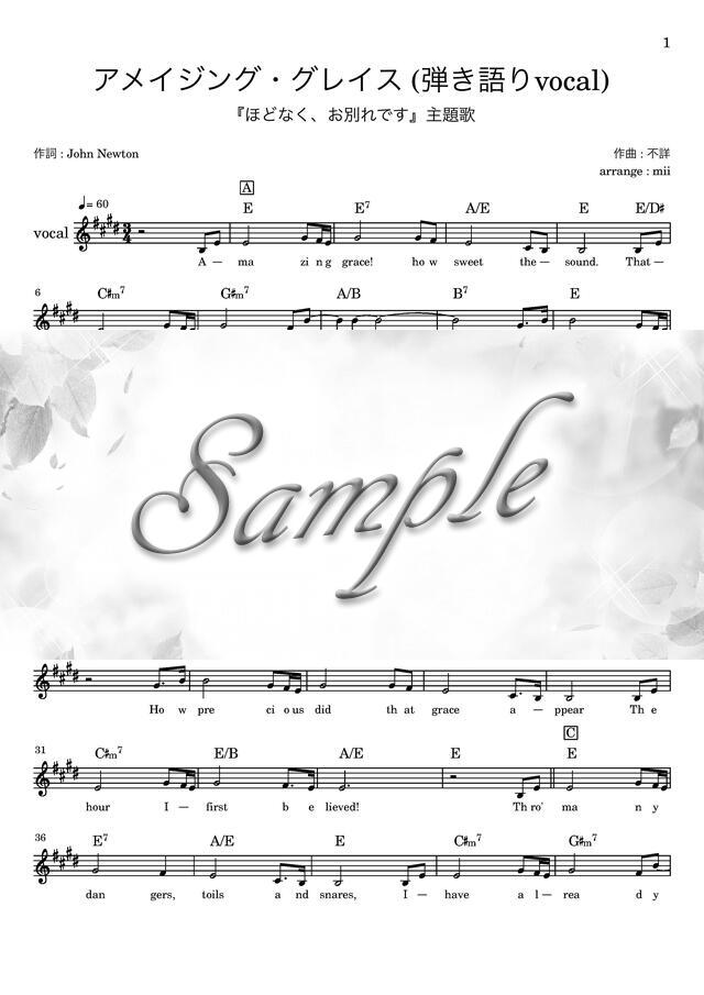 アメイジング・グレイス (コード付きメロディー譜) コンビニプリント対応
