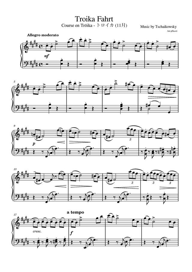 「トロイカ」(Edur)ピアノソロ初~中級(簡単アレンジ) コンビニプリント対応