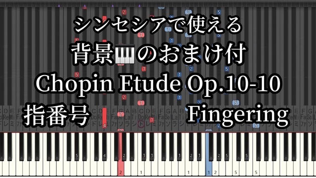 Chopin Etude Op.10-10 Keyboard background images and finger-numbered MIDI data for use in Synthesia シンセシアで使える鍵盤の背景画像と指番号付MIDIデータ