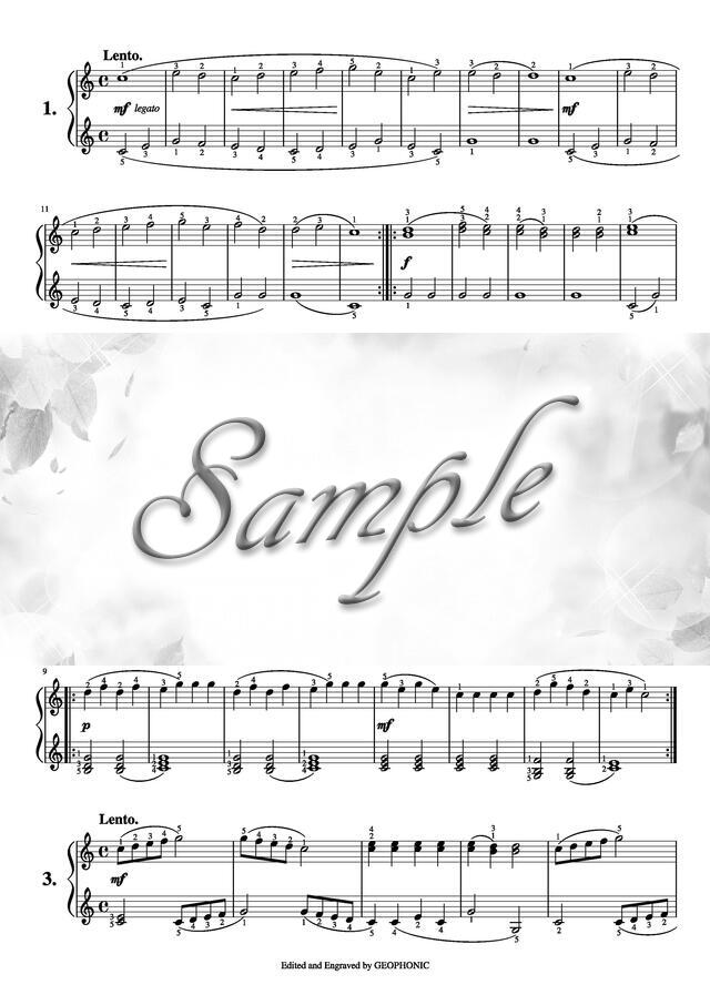 ベートーヴェンの弟子として知られるツェルニーによる、初学段階を想定した練習曲集です。題名が示すとおり、比較的無理のない音域と明確な運指で構成されており、読譜・指の独立・レガート奏法・基本的な強弱表現など、演奏の基礎に取り組むための内容となっています。