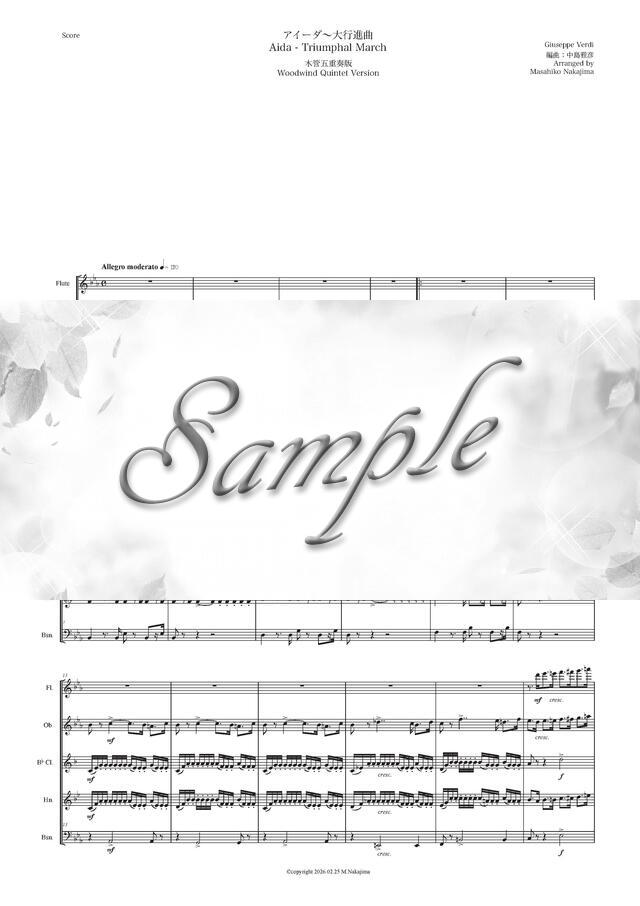 ヴェルディ「アイーダ~大行進曲」New木管五重奏版 コンビニプリント対応