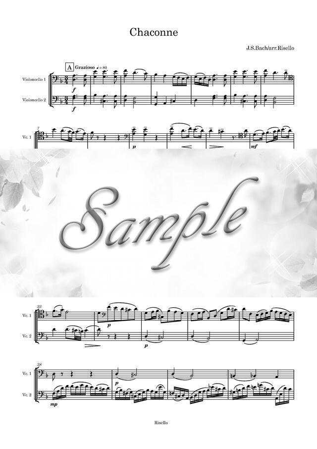 J.S.バッハ 「シャコンヌ」 チェロ二重奏版 スコア譜 コンビニプリント対応