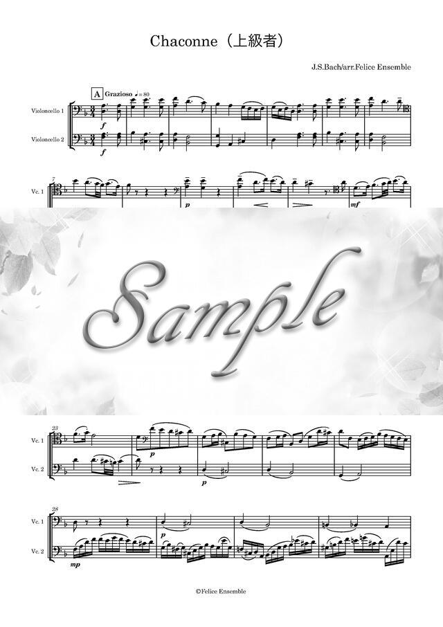 J.S.バッハ 「シャコンヌ」 チェロ二重奏版(上級) スコア譜 コンビニプリント対応