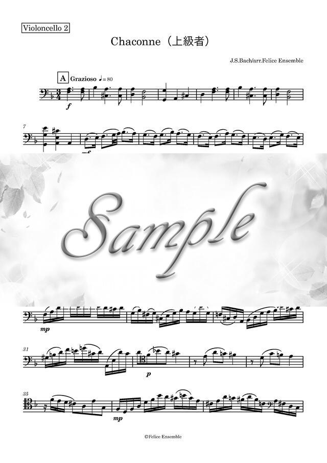 J.S.バッハ 「シャコンヌ」 チェロ二重奏版(上級) パート譜 コンビニプリント対応