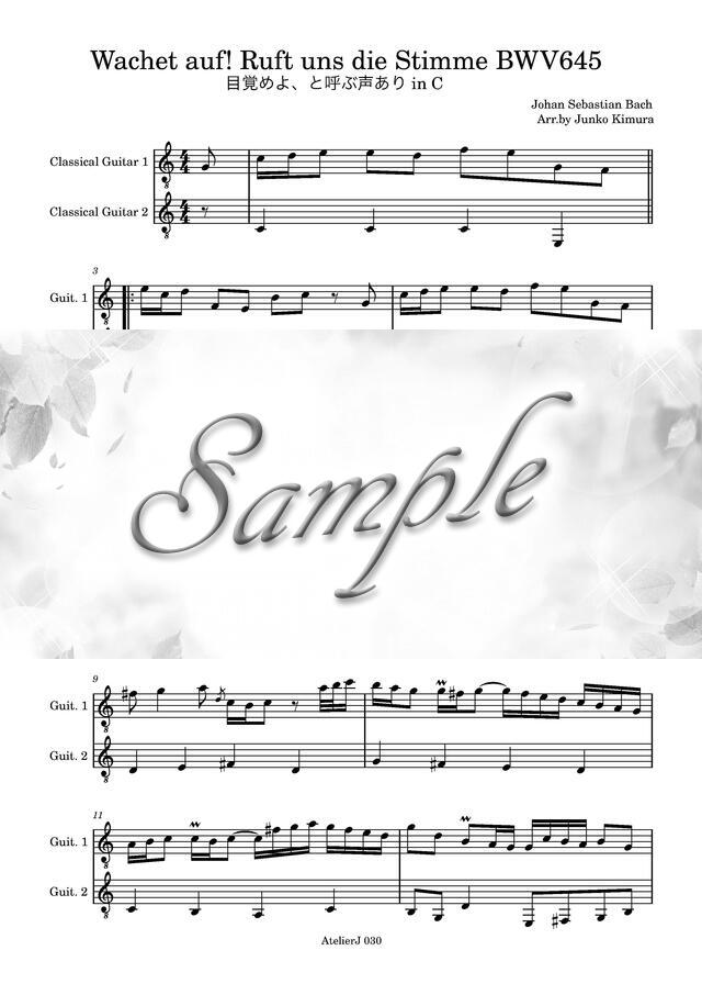 目覚めよ、と呼ぶ声あり in C (Wachet Auf! Ruft uns die Stimme) BWV645 ギター二重奏 初中級者用 コンビニプリント対応