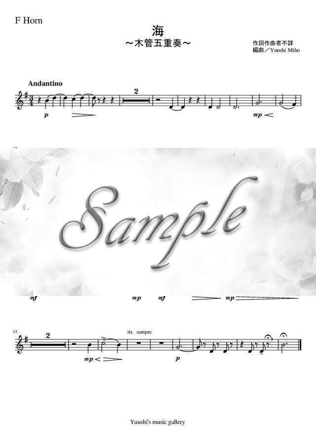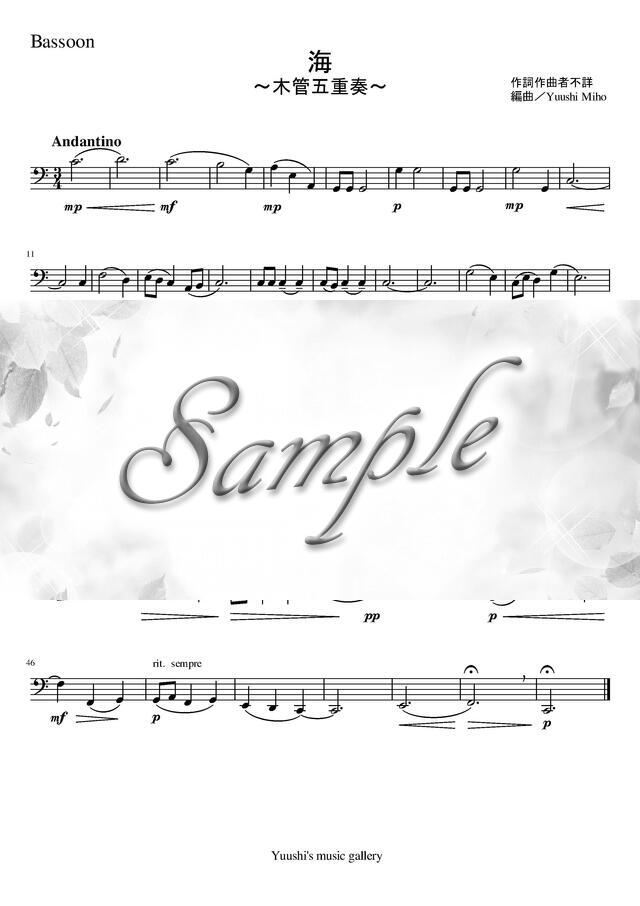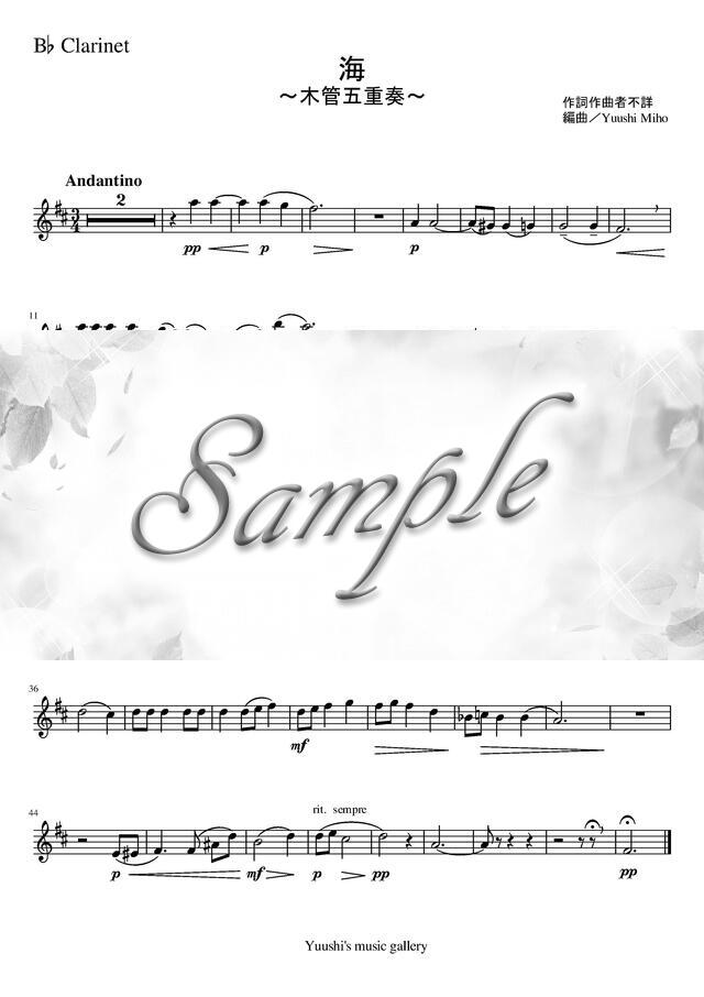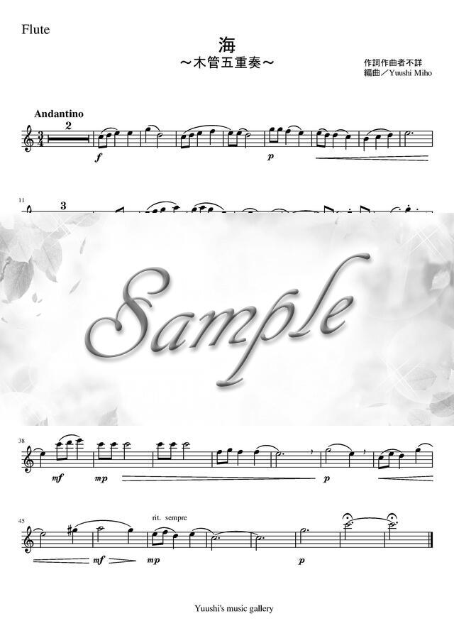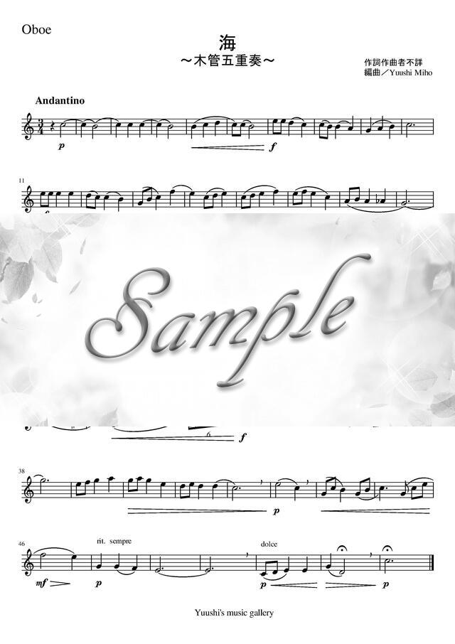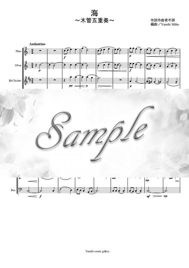 海(唱歌)(木管五重奏) コンビニプリント対応