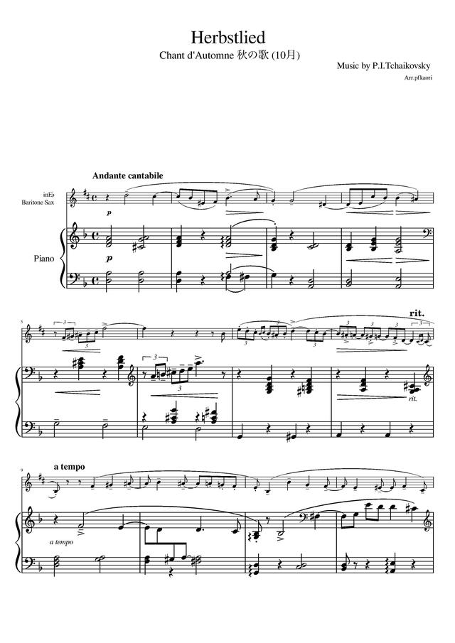 四季より「秋の歌」バリトンサックス&ピアノ コンビニプリント対応
