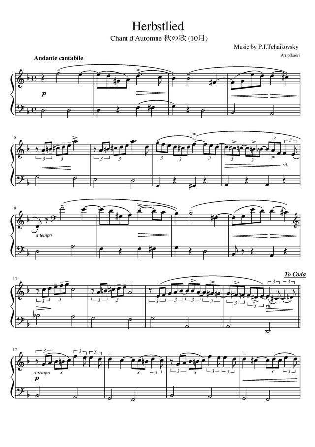 四季より「秋の歌」(Dm)ピアノソロ初級 / 簡単アレンジ コンビニプリント対応