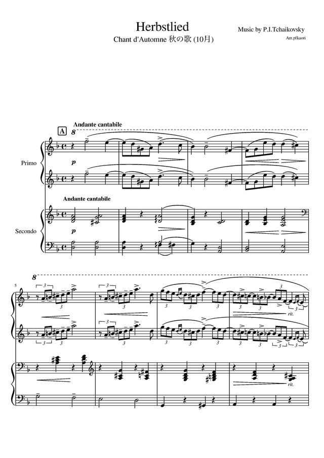 四季より「秋の歌」(Dm)ピアノ連弾(4手) / 初~中級 コンビニプリント対応