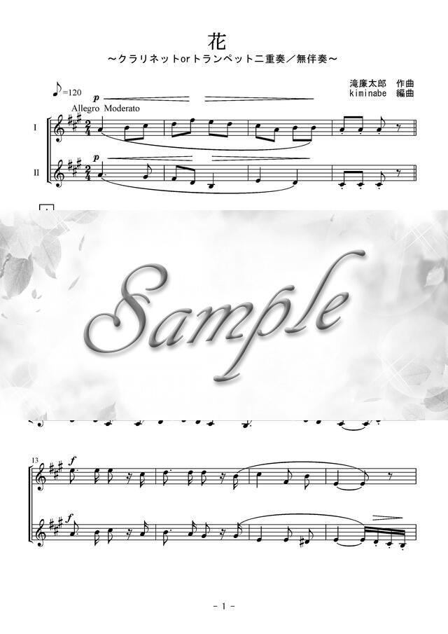 花(クラリネットorトランペット二重奏 / 無伴奏) コンビニプリント対応
