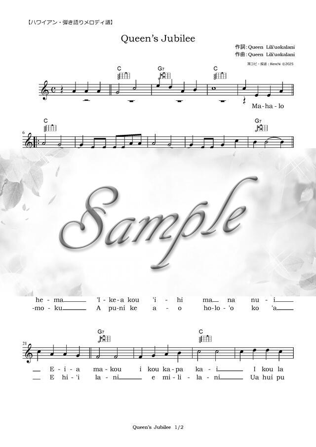 Queen’s Jubilee【ハワイアン・弾き語りメロディ譜 コンビニプリント対応