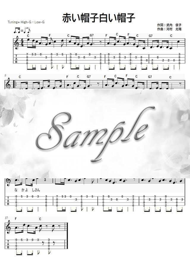 赤い帽子白い帽子(ウクレレソロ / High-G・Low-G / 初級~中級) コンビニプリント対応