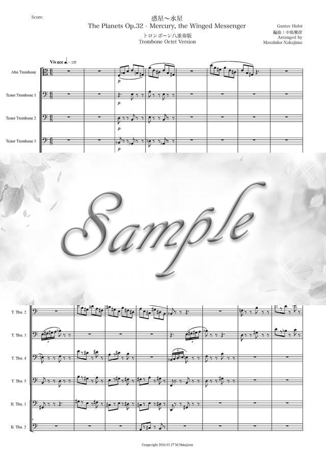 ホルスト「惑星~水星」トロンボーン八重奏版 コンビニプリント対応