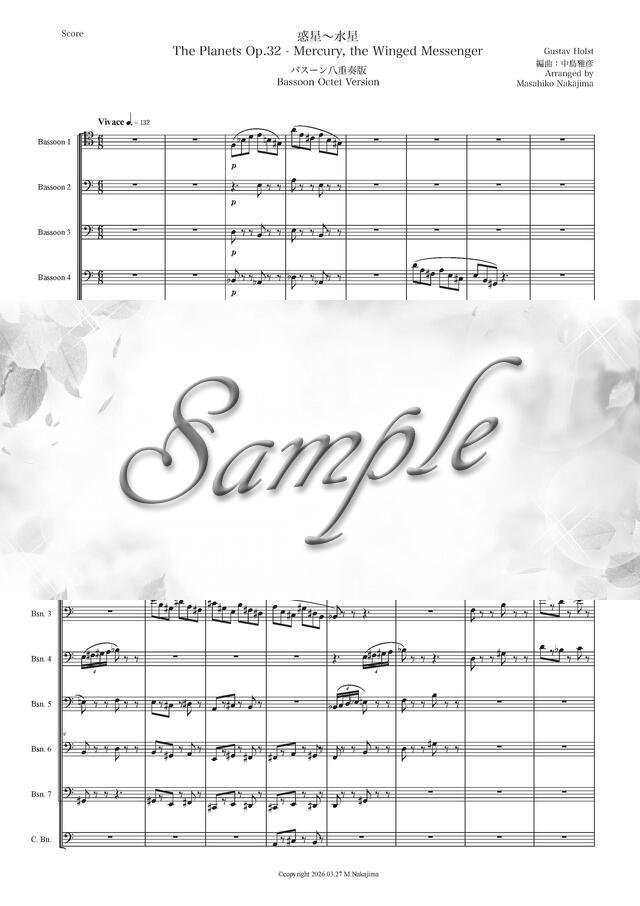 ホルスト「惑星~水星」バスーン八重奏版 コンビニプリント対応