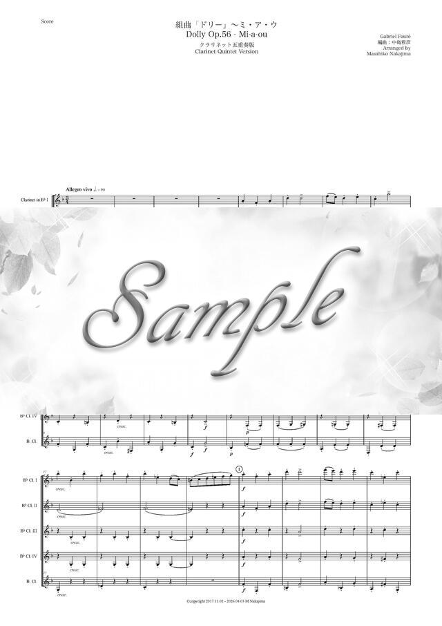 フォーレ「ドリー~ミ・ア・ウ」クラリネット五重奏版 コンビニプリント対応