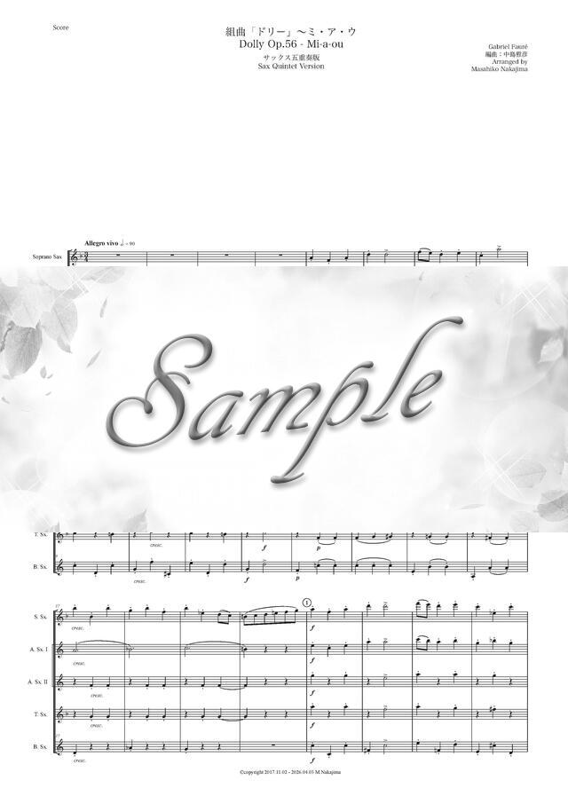 フォーレ「ドリー~ミ・ア・ウ」サックス五重奏版 コンビニプリント対応