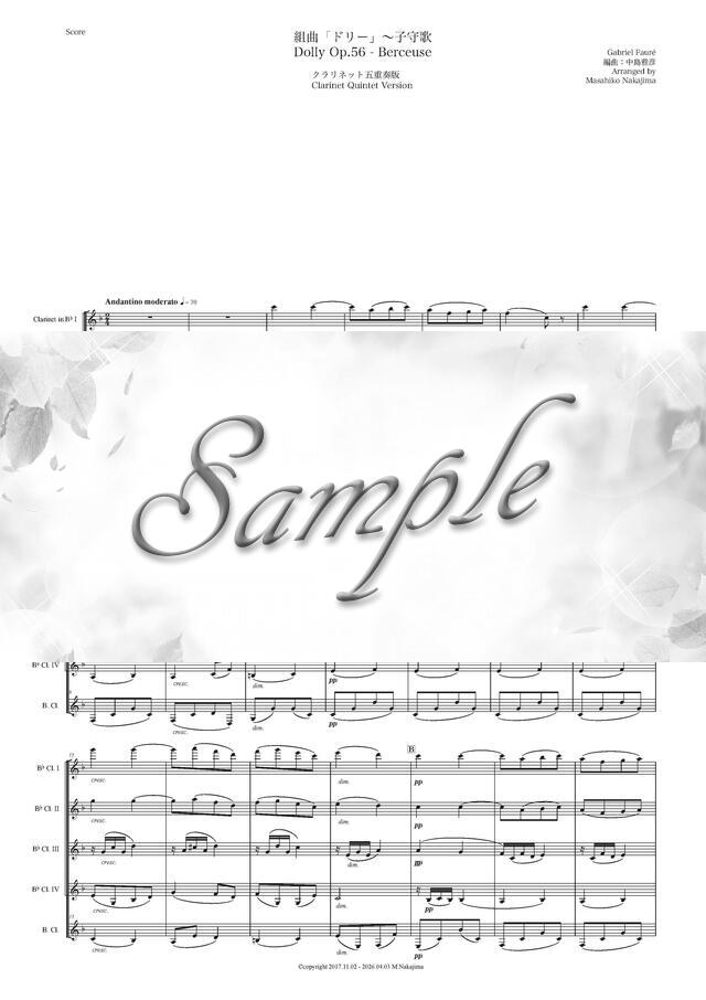 フォーレ「ドリー~子守歌」クラリネット五重奏版 コンビニプリント対応