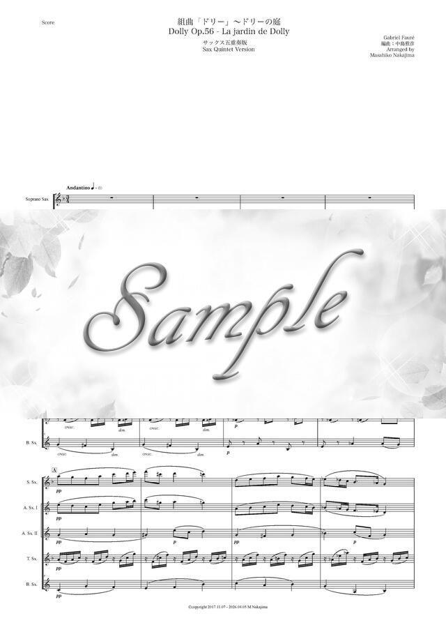 フォーレ「ドリー~ドリーの庭」サックス五重奏版 コンビニプリント対応