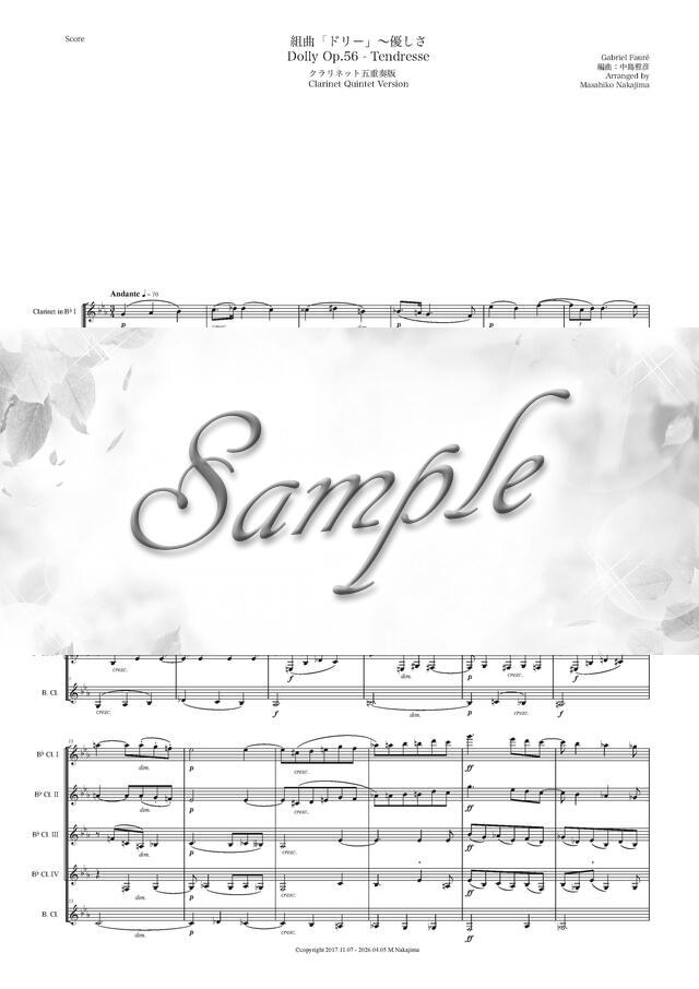 フォーレ「ドリー~優しさ」クラリネット五重奏版 コンビニプリント対応