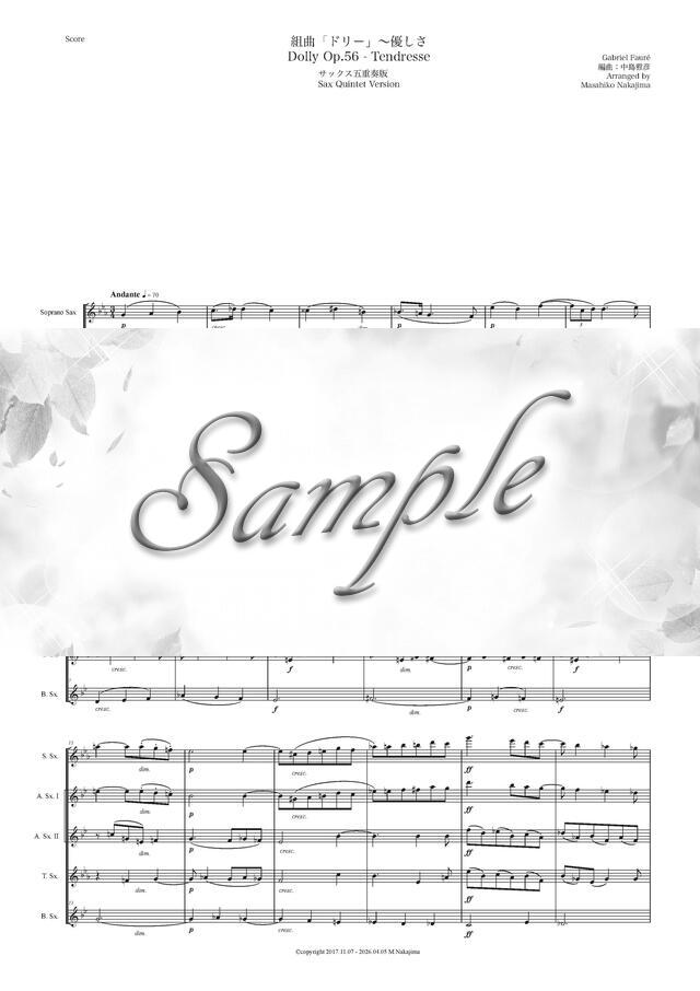 フォーレ「ドリー~優しさ」サックス五重奏版 コンビニプリント対応