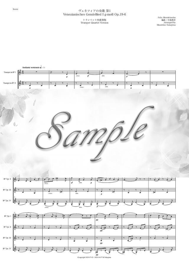 メンデルスゾーン 「ヴェネツィアの舟歌 第1」トランペット四重奏版 コンビニプリント対応