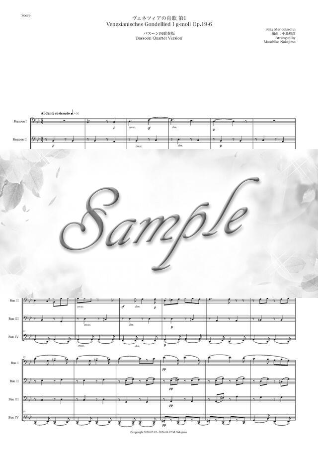 メンデルスゾーン 「ヴェネツィアの舟歌 第1」バスーン四重奏版 コンビニプリント対応