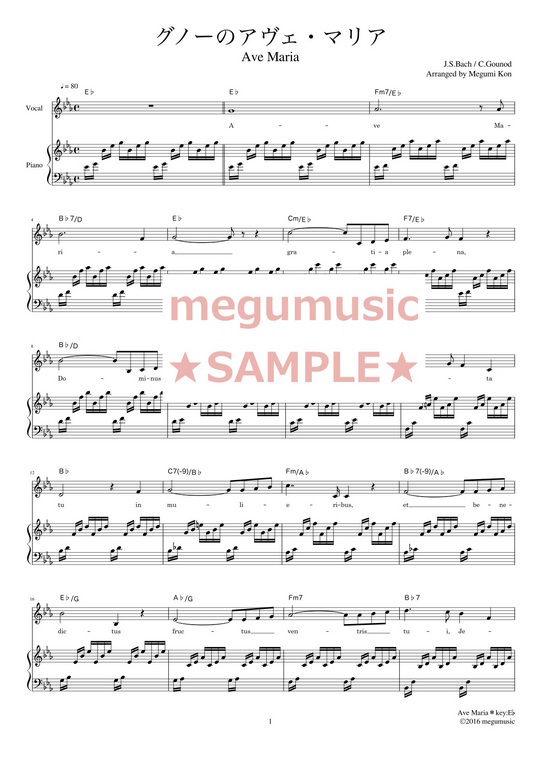 アヴェ・マリア(グノー)Key:E♭ コンビニプリント対応