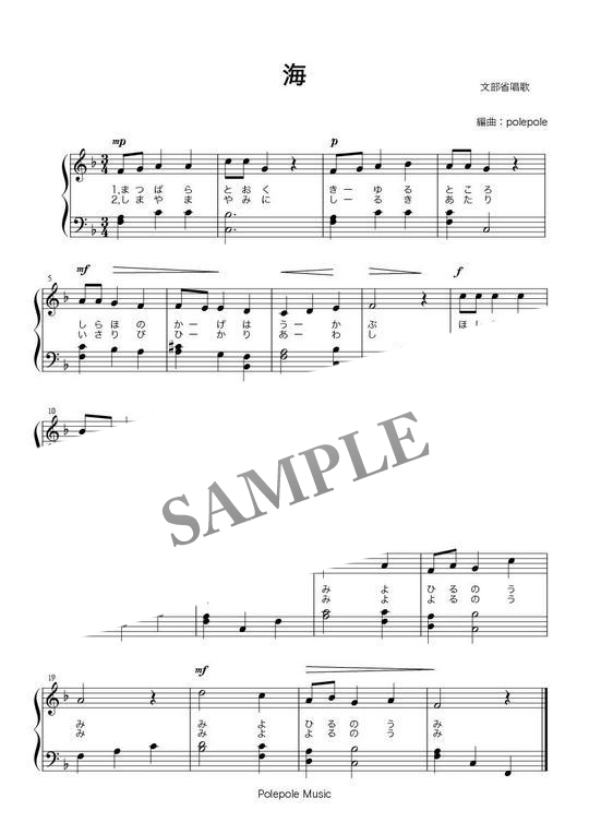 「海」文部省唱歌 弾き歌い楽譜 コンビニプリント対応