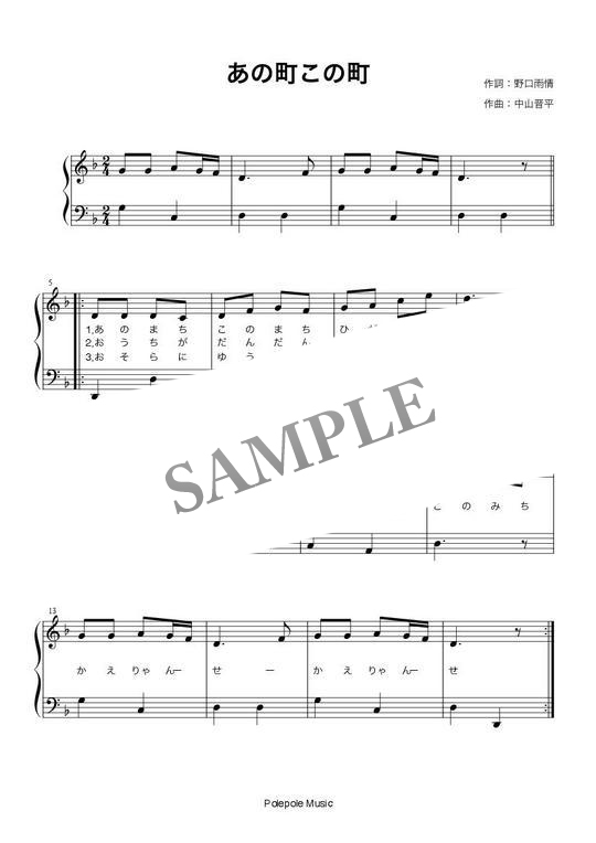 「あの町この町」弾き歌い楽譜 コンビニプリント対応
