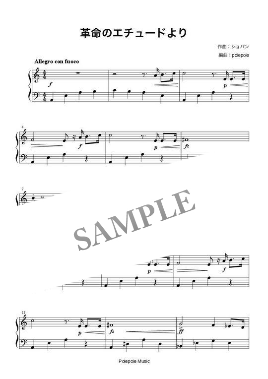 「革命のエチュードより」ピアノ簡単楽譜 コンビニプリント対応