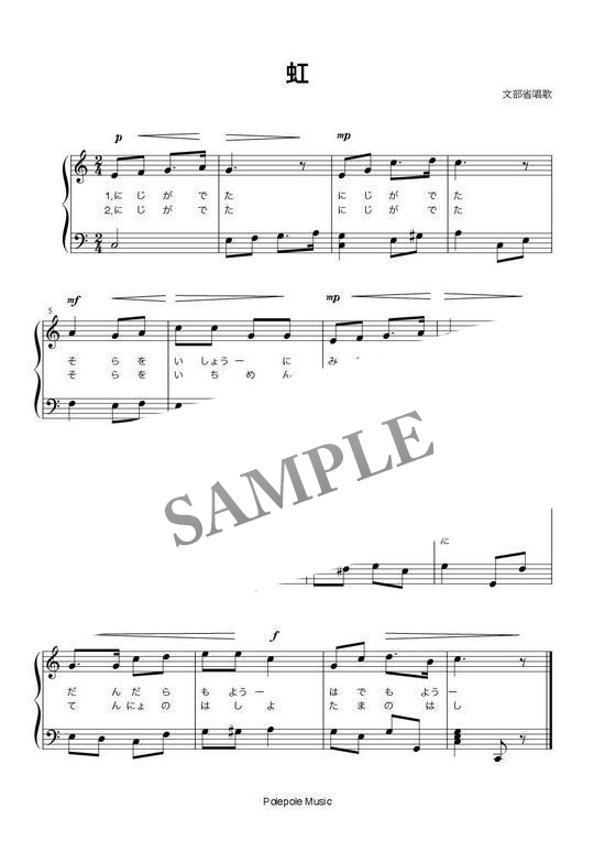 「虹」弾き歌い楽譜 コンビニプリント対応