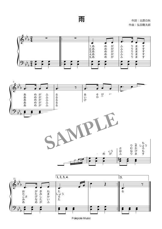 「雨」弾き歌い楽譜 コンビニプリント対応