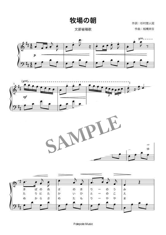 「牧場の朝」弾き歌い楽譜 コンビニプリント対応