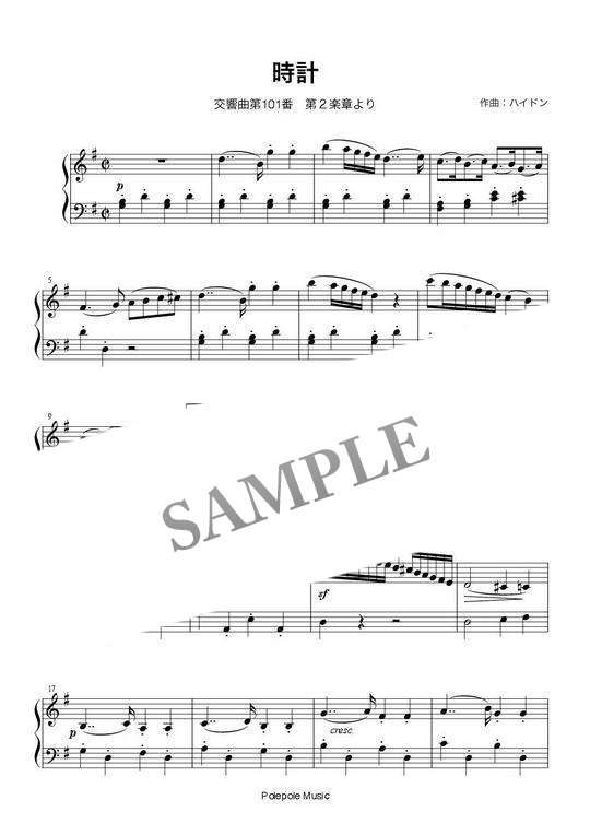 「時計」交響曲第101番 第2楽章より ピアノソロ楽譜 コンビニプリント対応