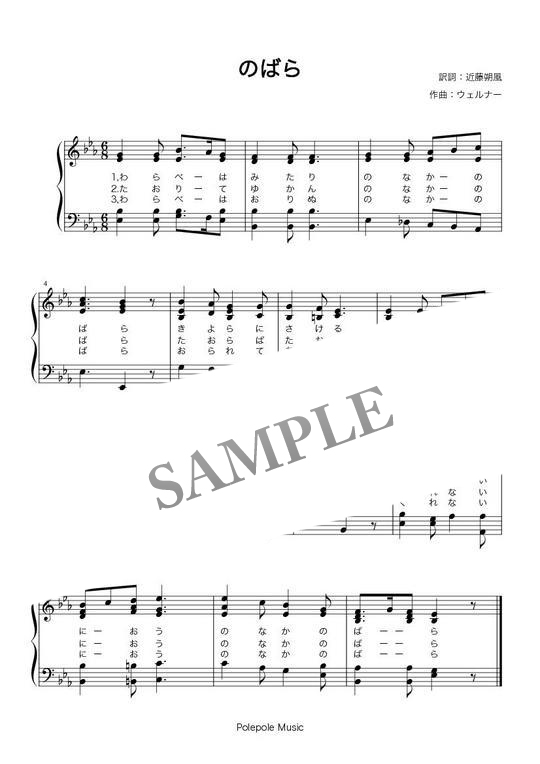 「野ばら」弾き歌い楽譜 コンビニプリント対応