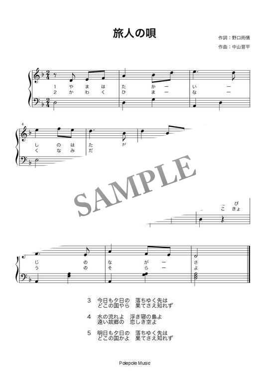 「旅人の唄」弾き歌い楽譜 コンビニプリント対応