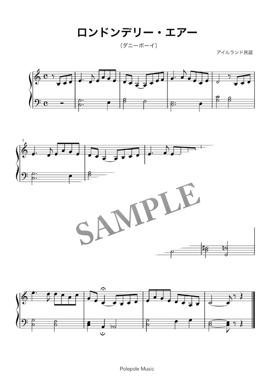 「ロンドンデリー・エア」ピアノソロ楽譜 初級~ コンビニプリント対応